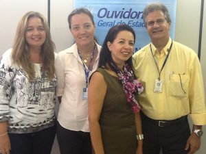 Os ouvidores do Hospital Getúlio Vargas (Lucenilda Marques), Perpart (Eli Colaço) e Secretaria de Administração (Déa Sales), visitaram a Ouvidoria Geral do Estado – OGE em 05.11.12. Na ocasião, a ouvidora geral do Estado, Karla Júlia Marcelino explanou sobre como escrever um artigo científico. A OGE vem produzindo artigos e publicando no site www.ouvidoria.pe.gov.br, além de ter lançado a 1º Revista Científica da Rede de Ouvidores em âmbito nacional.